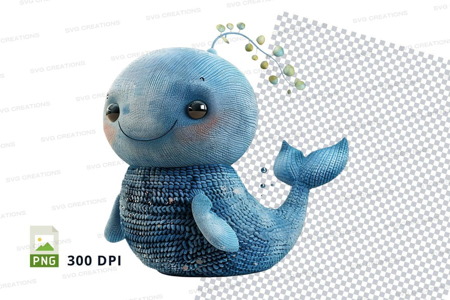 Cute blue cartoon whale clipart splashing water vector illus example image 1
