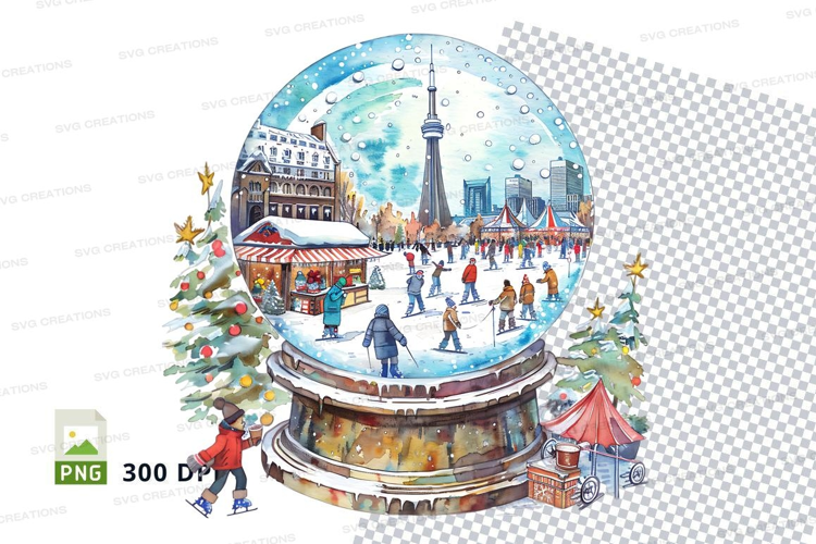 Winter city snow globe clipart illustration 3D scene festive example image 1