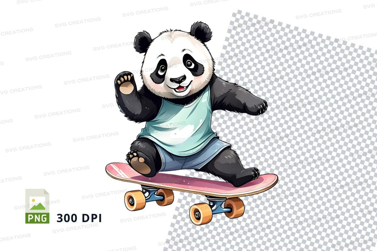 Cute panda clipart skating on pink skateboard vector illustr example image 1