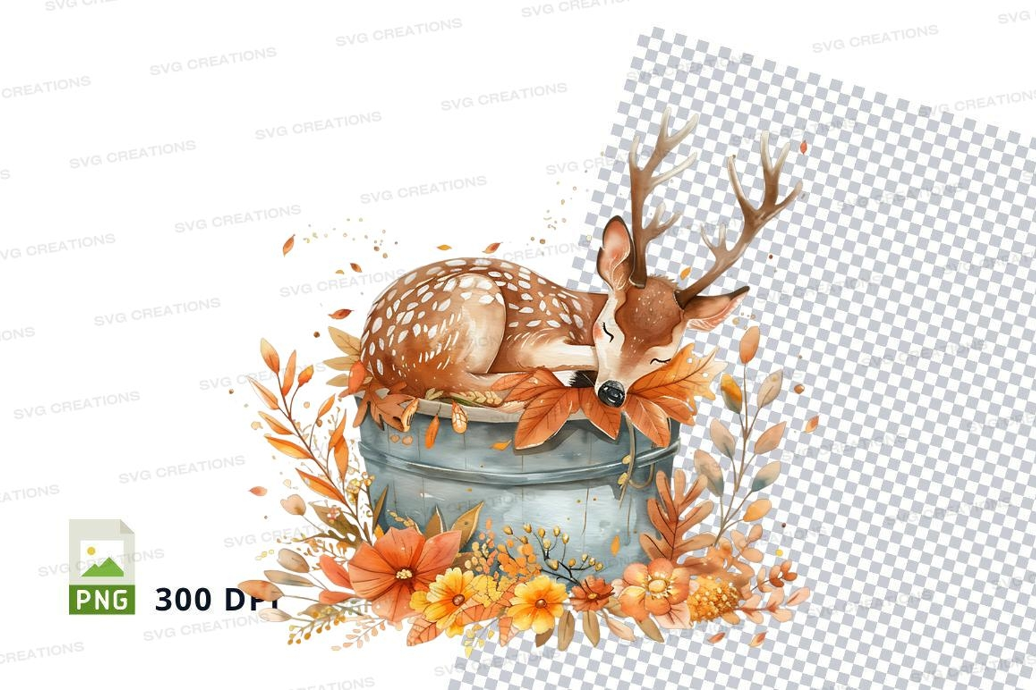 Autumn deer clipart in rustic jar with flowers and leaves example image 1