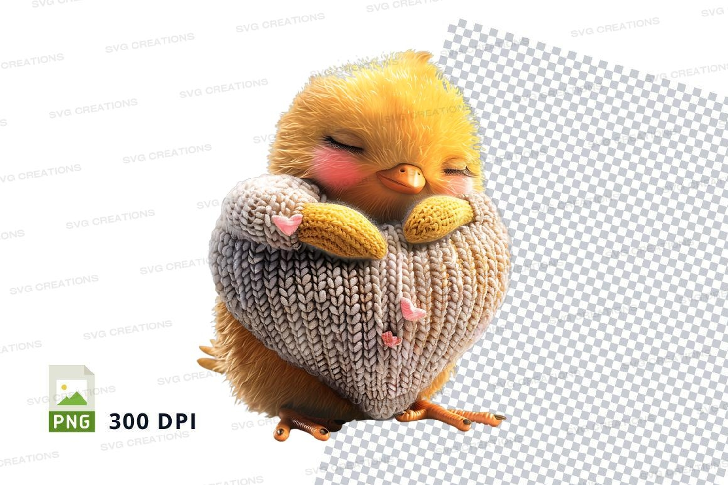 Similar Design Products to Cute yellow chick knitted toy sleeping on mesh background