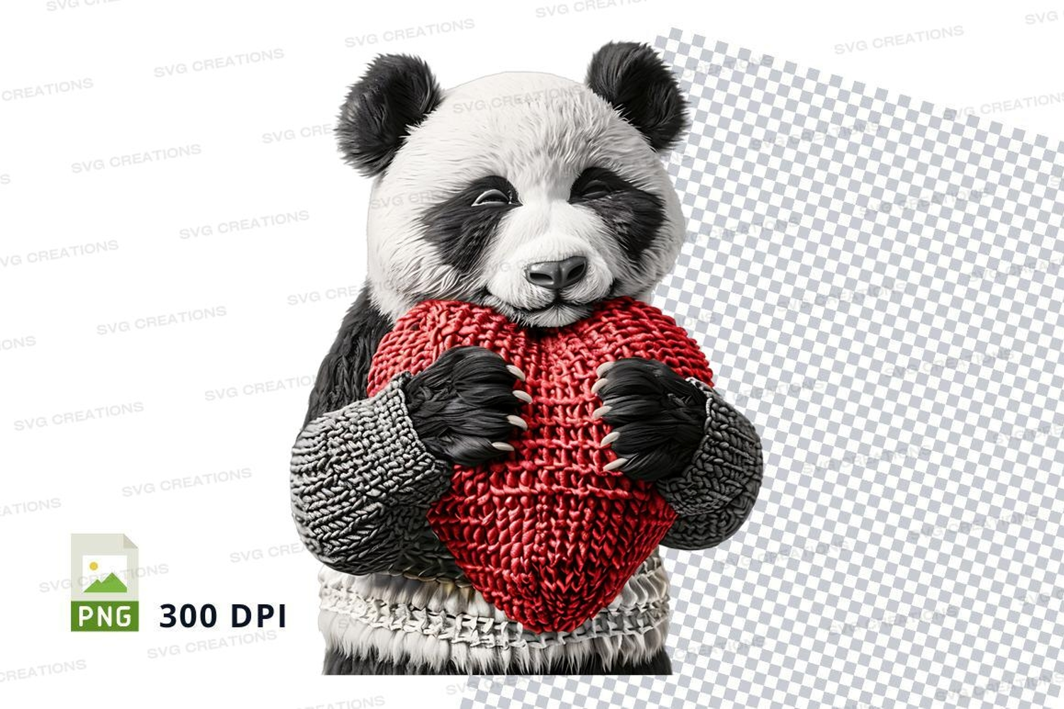 Similar Design Products to Cute knitted panda clipart holding heart in snow