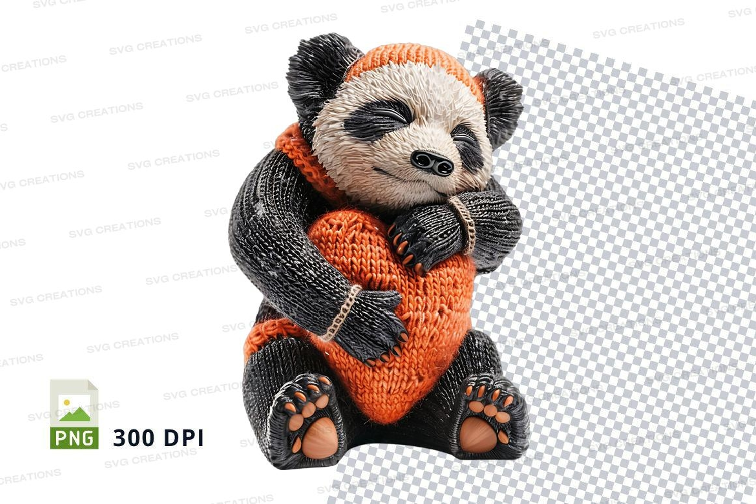 Cute panda clipart sitting knitted orange scarf PNG example image 1