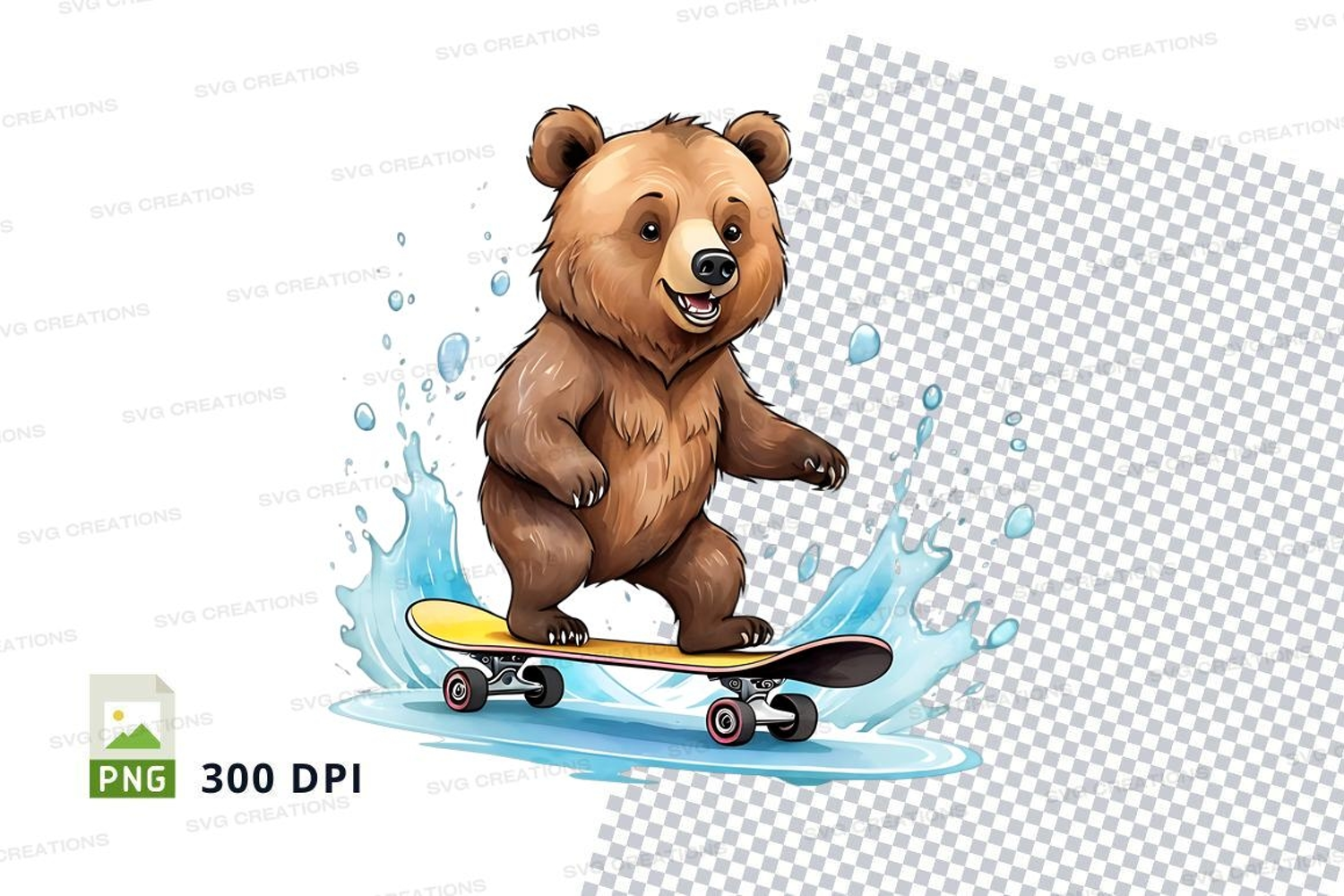 Cute brown bear skateboarding on ice clipart PNG example image 1