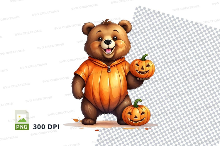 Cute bear holding pumpkin Halloween clipart PNG 300 DPI example image 1
