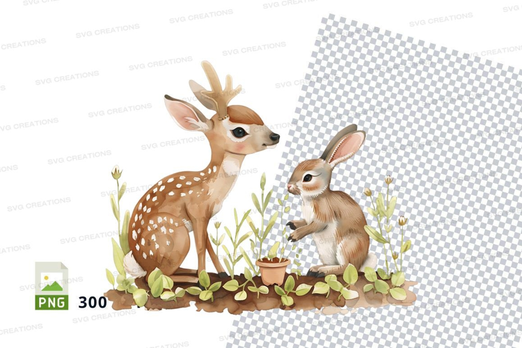 Similar Design Products to Cute deer and rabbit clipart on log in nature illustration