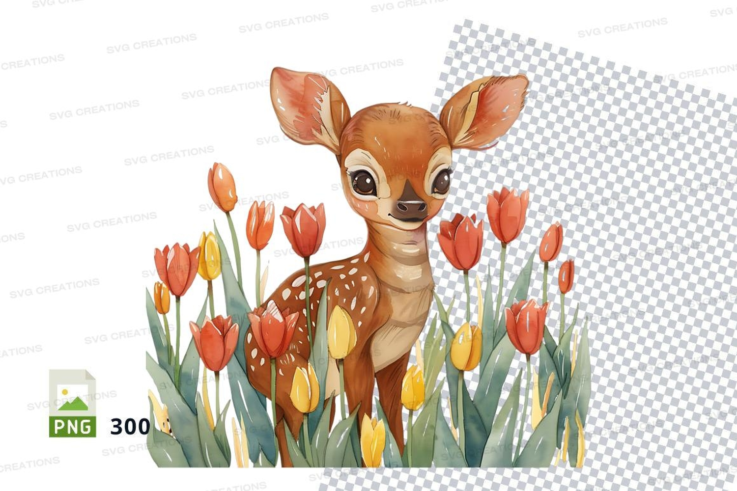 Similar Design Products to Cute deer clipart in tulip field spring illustration