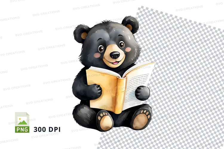 Cute black bear reading book clipart transparent PNG example image 1