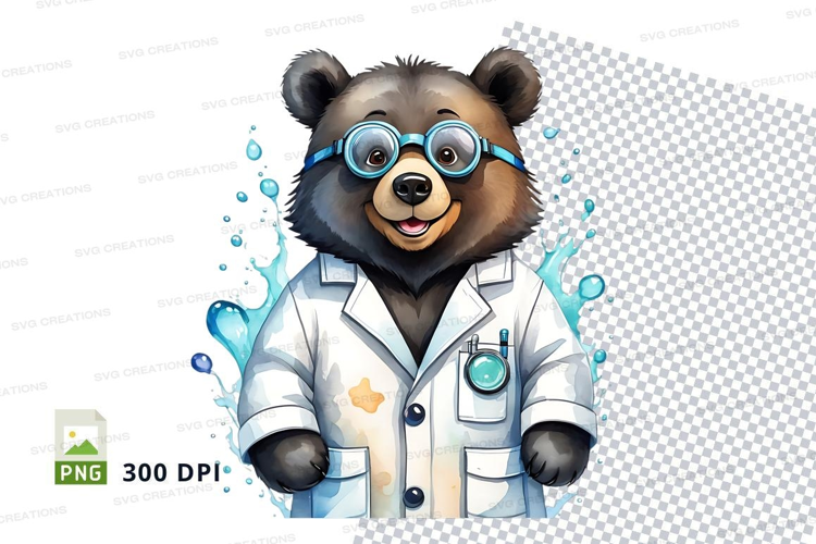 Cute doctor bear clipart in lab coat with stethoscope and gl example image 1