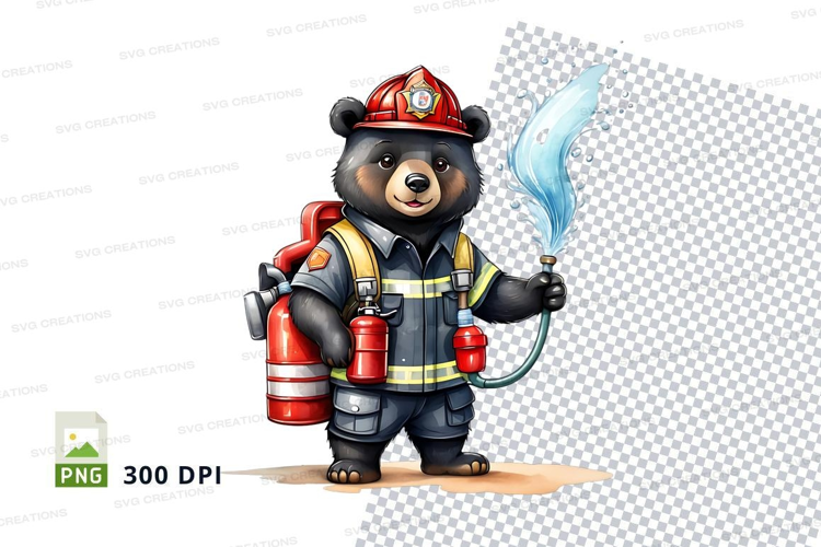 Cartoon firefighter bear holding hose clipart PNG example image 1