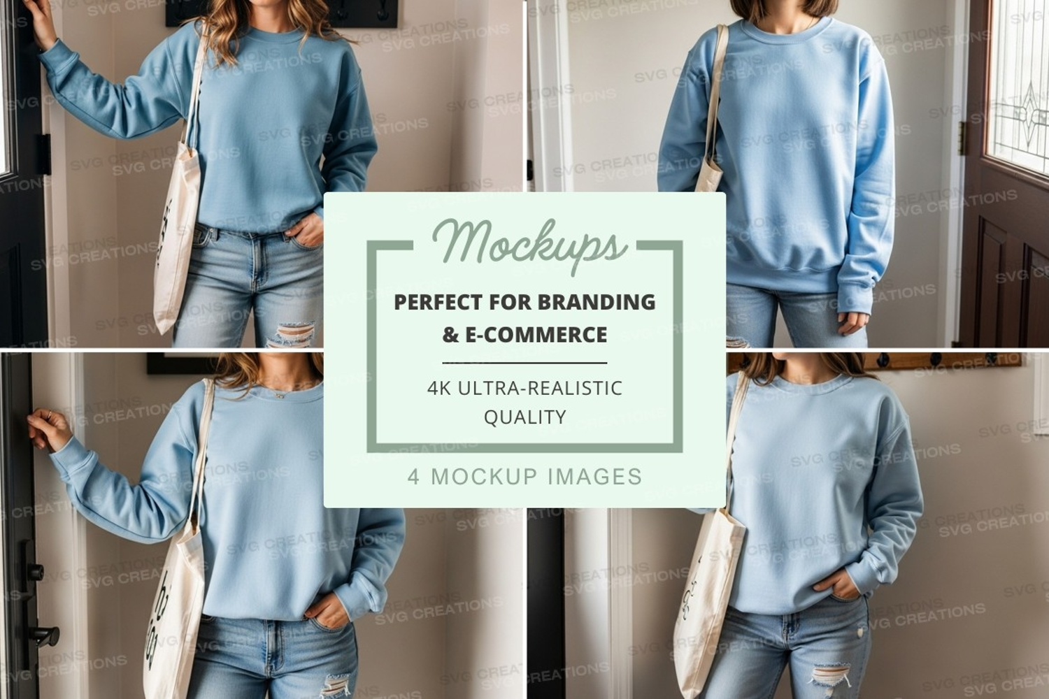 Modern Lifestyle Urban Casual Mockup Woman Blue Jeans Sweatshirt Posing