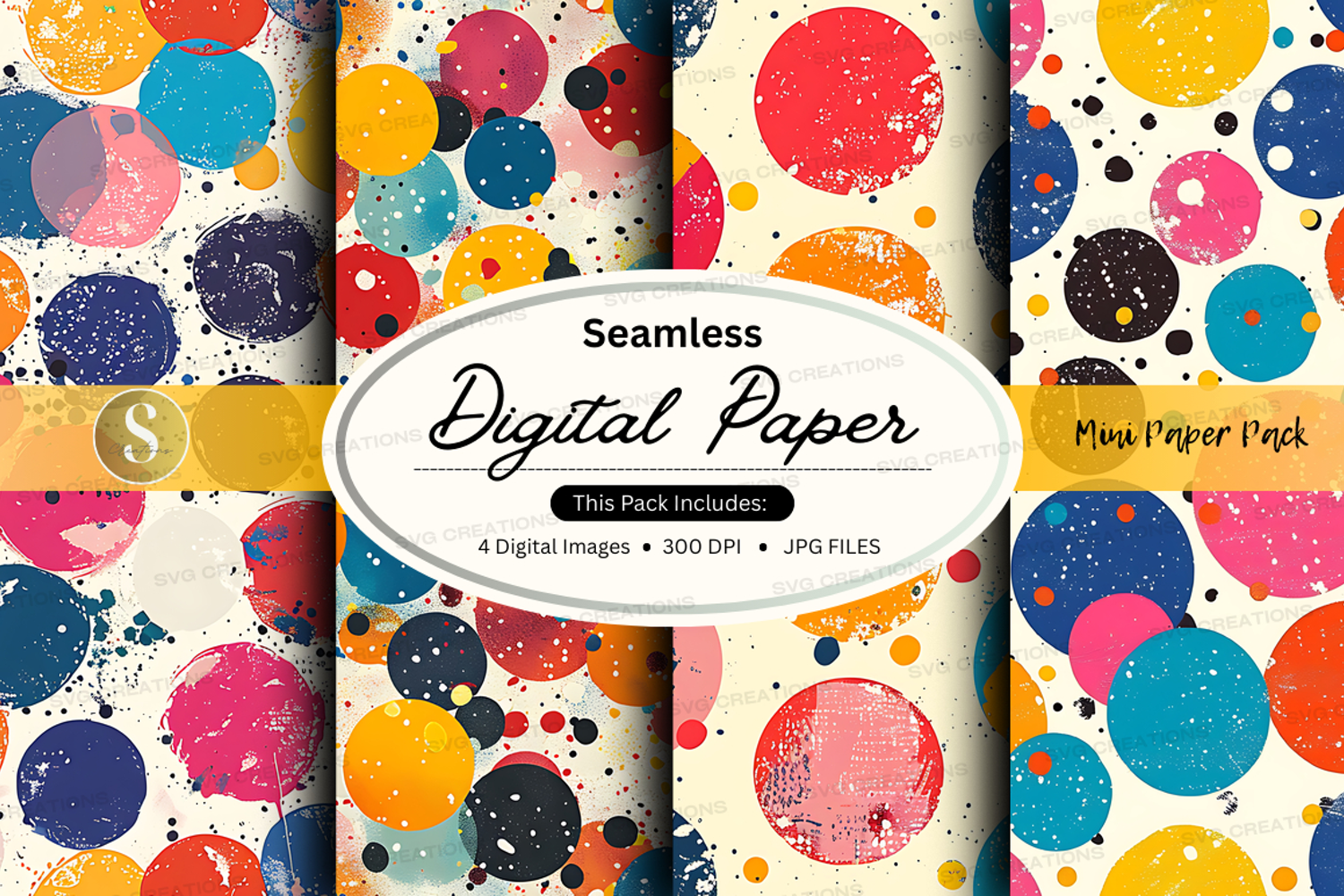 Seamless digital paper pack with colorful polka dots and wat example image 1