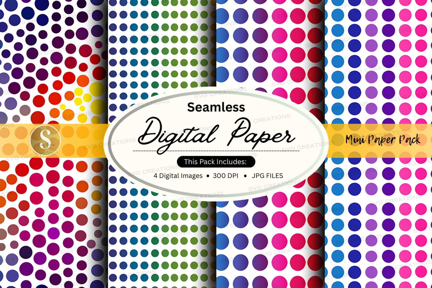 Seamless Digital Paper Pack with Vibrant Polka Dots and Patt