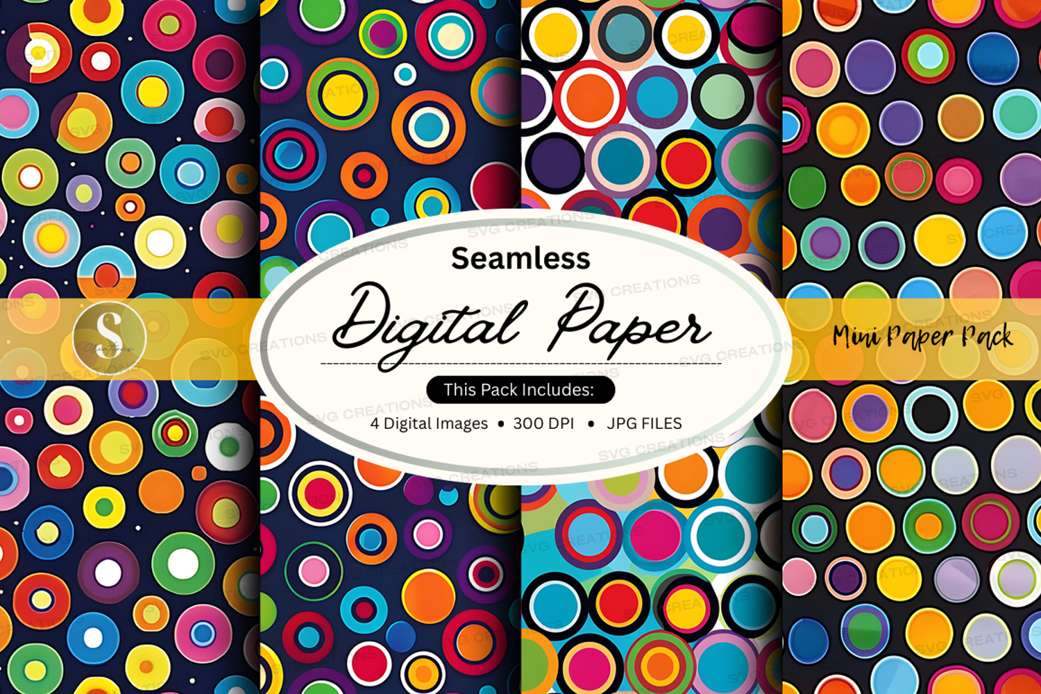 Similar Design Products to Colorful Seamless Digital Paper Pattern with Vibrant Polka D