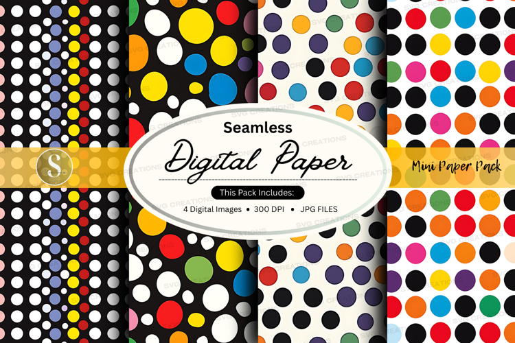 Seamless digital paper patterns with colorful polka dots and