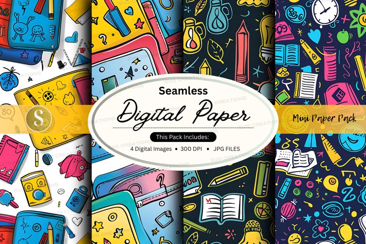 Similar Design Products to Seamless digital paper pack with school supplies and station