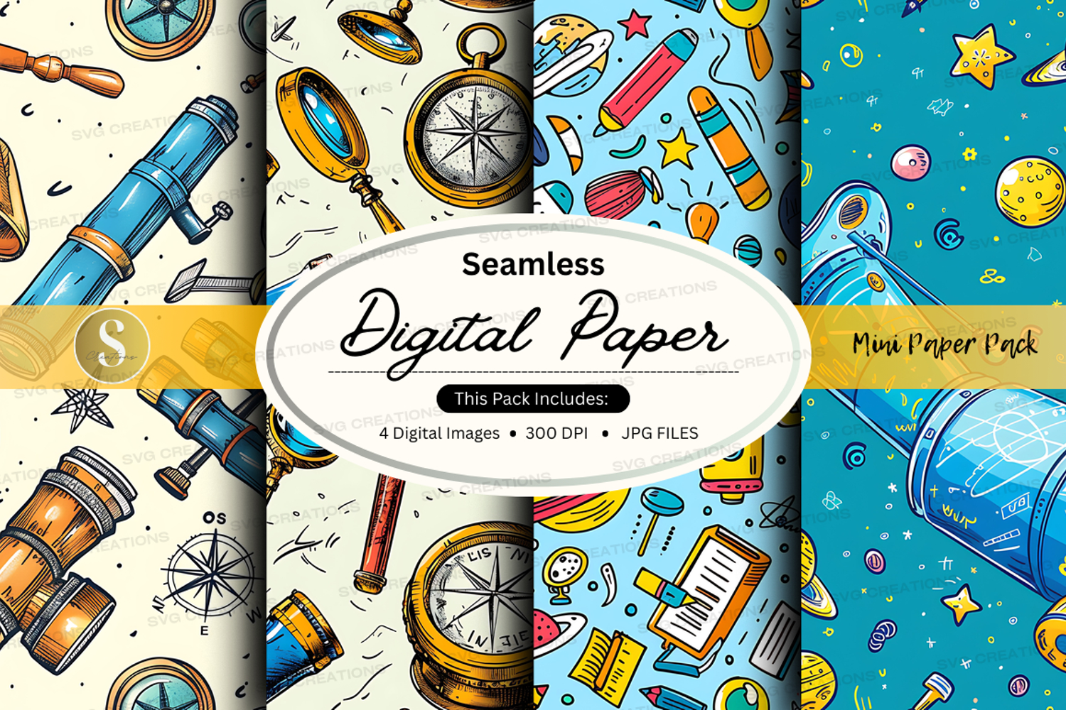 Similar Design Products to Seamless digital paper pack with vintage travel and school s