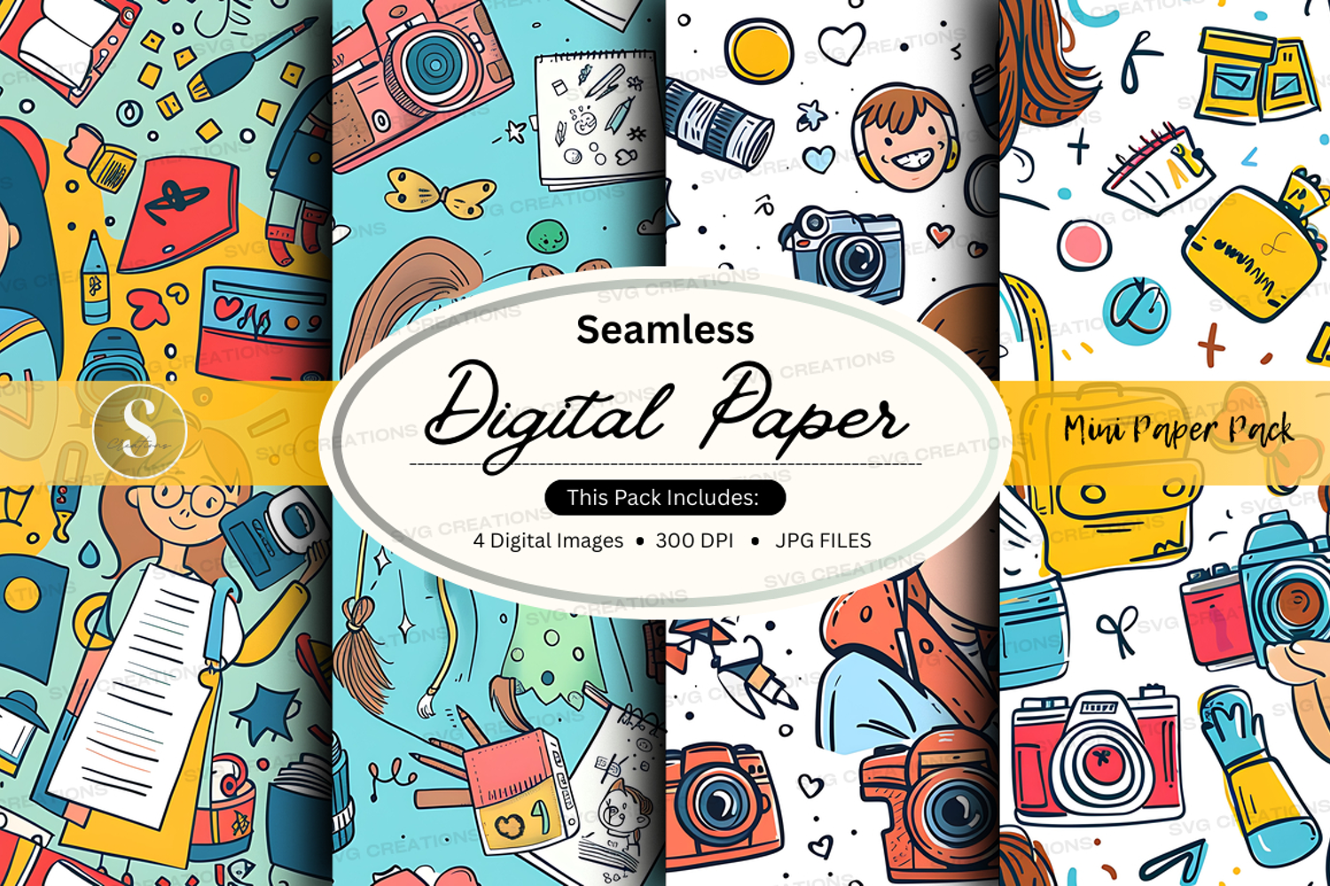 Similar Design Products to Seamless digital paper texture with vintage camera and photo