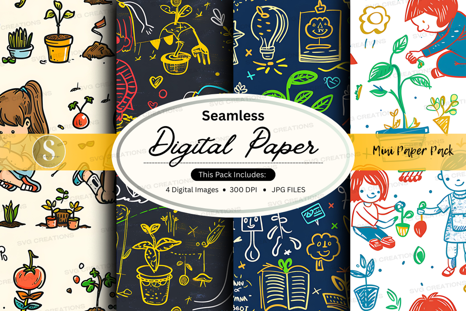 Similar Design Products to Seamless digital paper pack with gardening and creativity il
