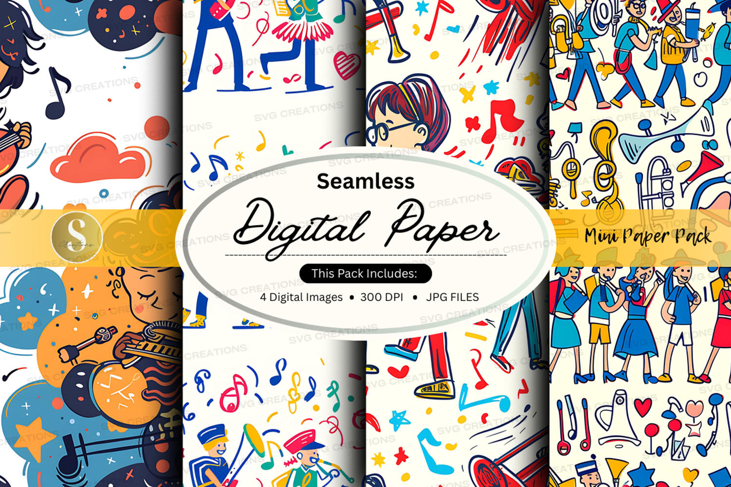Similar Design Products to Seamless digital paper pack with music and art patterns for