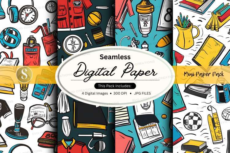 Seamless digital paper pack with office and school supplies