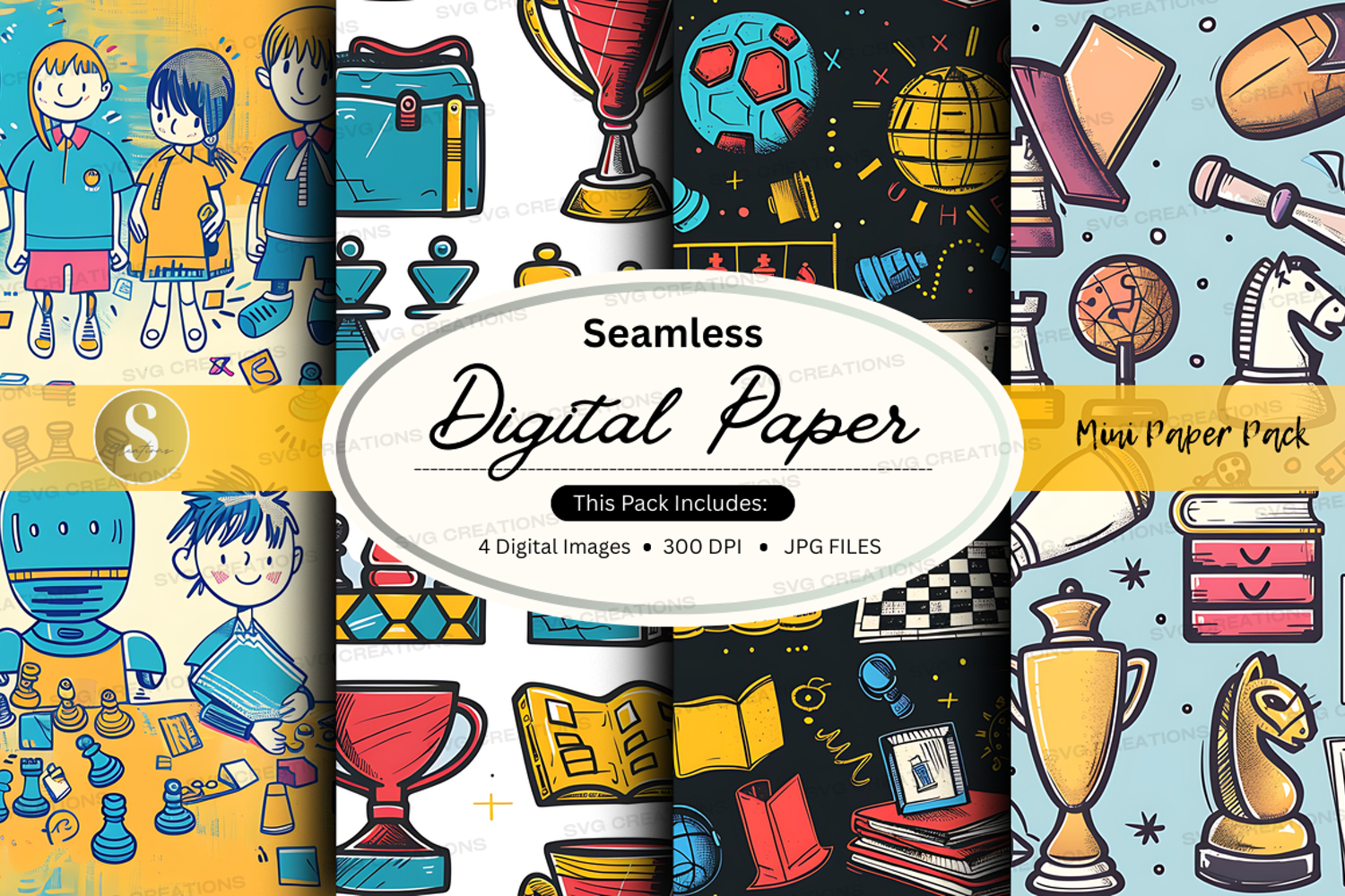 Similar Design Products to Seamless digital paper pack with school and sports icons, fl