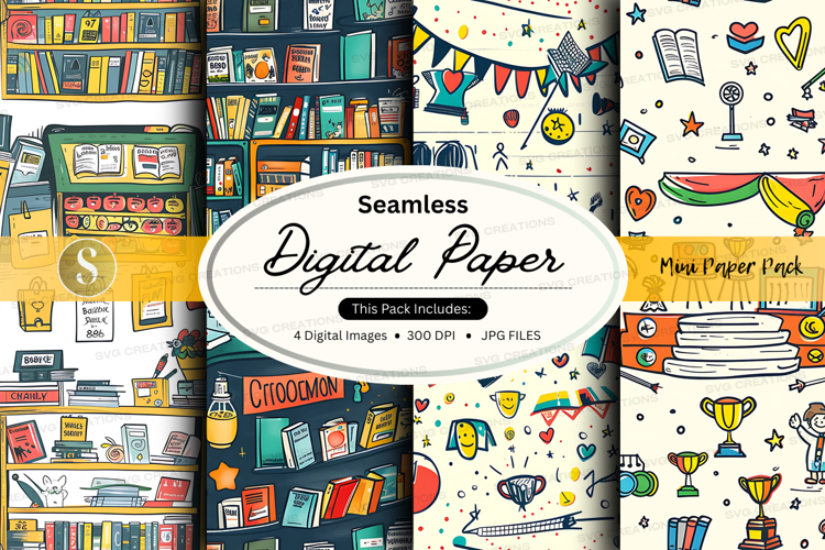 Seamless Digital Paper Pack with Books, Trophies and School