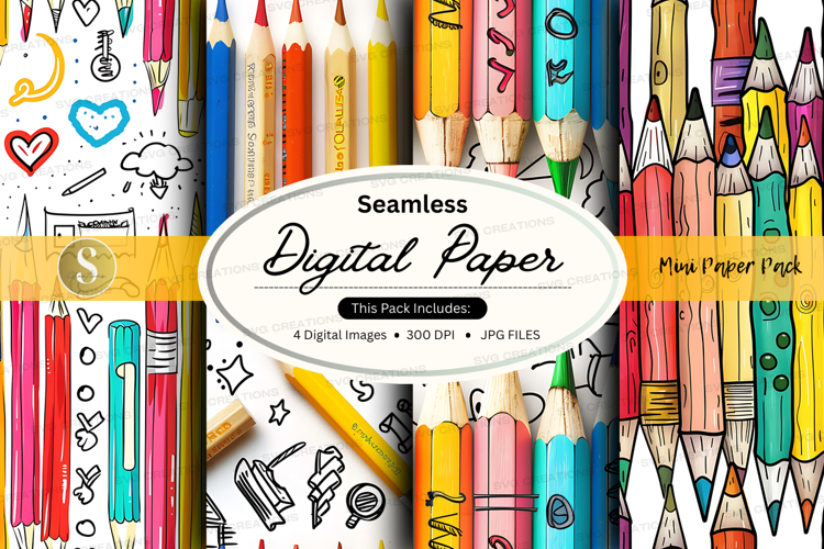 Seamless digital paper patterns with colorful pencils and cr example image 1