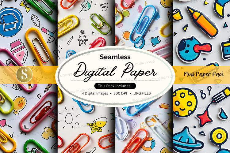 Seamless Digital Paper Pack with Stationery and Office Suppl