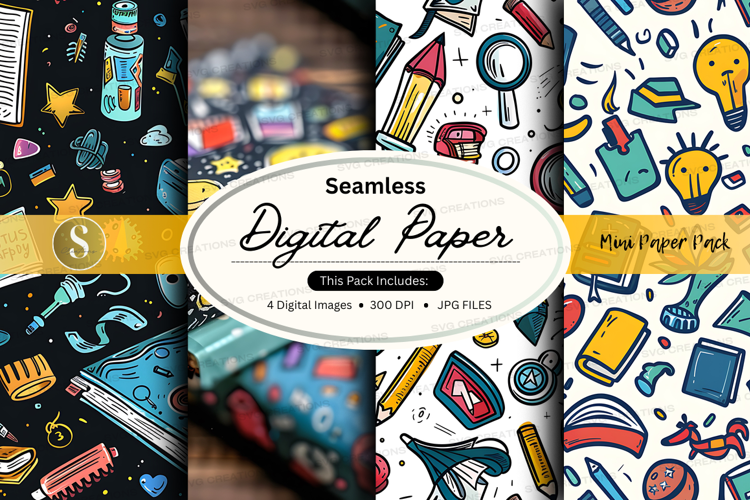 Similar Design Products to Seamless digital paper pack with stationery and school suppl