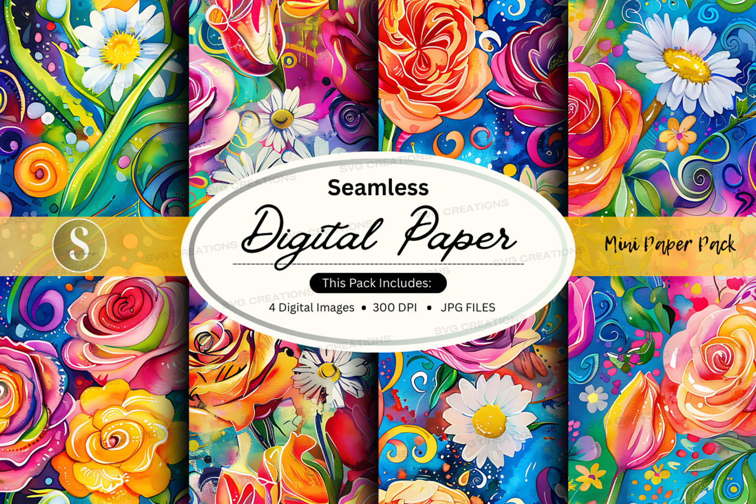 Similar Design Products to Seamless floral digital paper pack with vibrant watercolor r