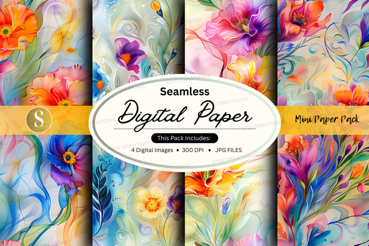 Seamless Watercolor Floral Digital Paper Pack for Crafts and