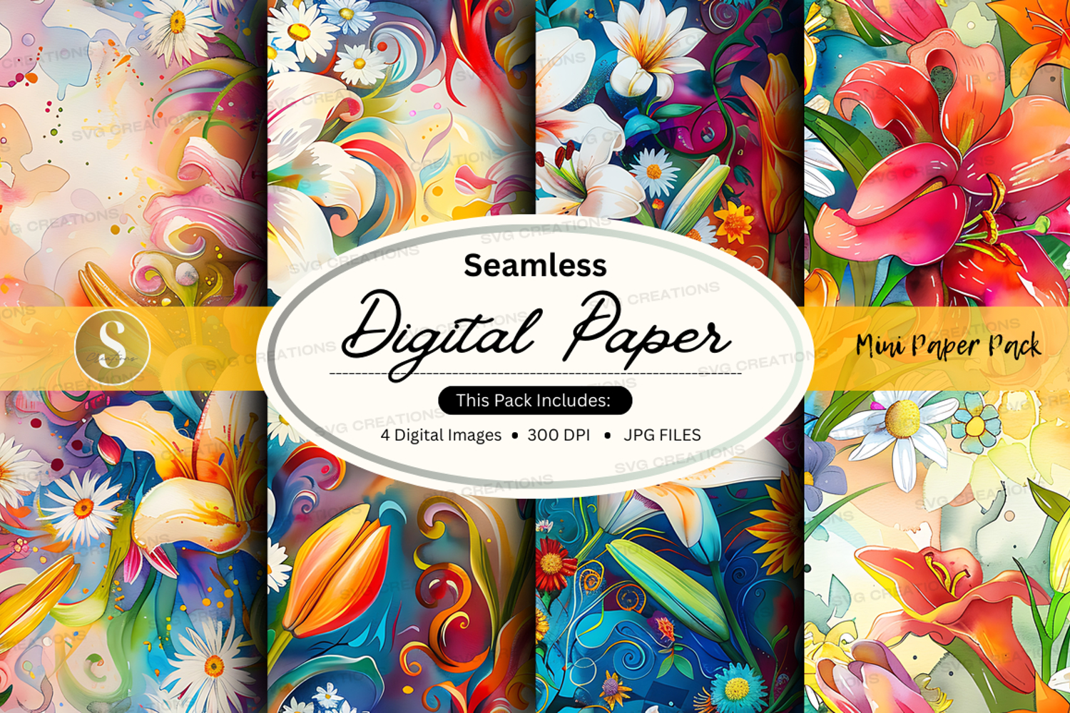 Similar Design Products to Seamless Digital Paper Pack with Floral Watercolor Patterns