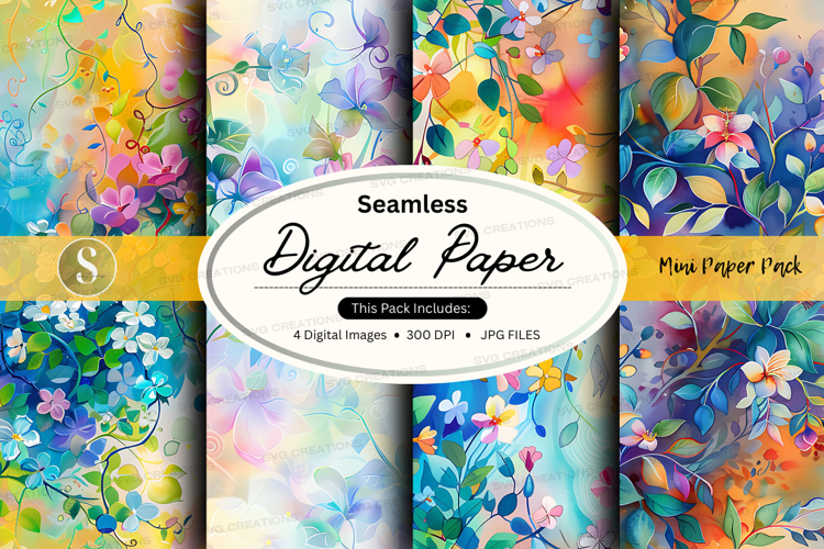 Similar Design Products to Seamless digital paper pack with watercolor floral patterns