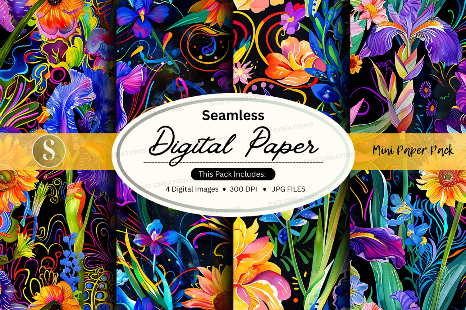 Seamless Digital Paper Pack with Vibrant Floral Patterns and