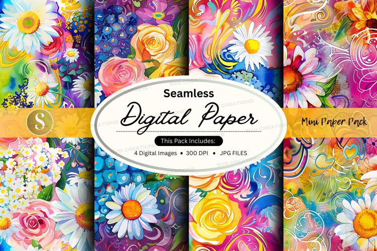 Similar Design Products to Seamless floral digital paper patterns with vibrant watercol