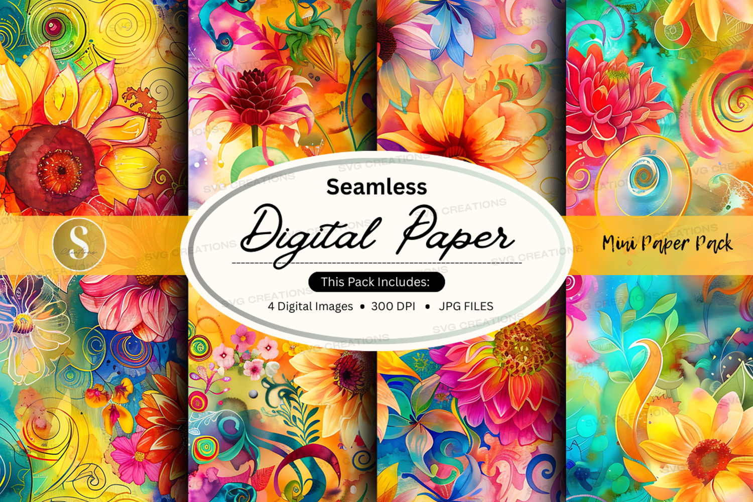Similar Design Products to Seamless digital paper pack with vibrant floral watercolor t