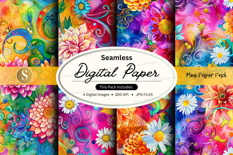 Similar Design Products to Seamless Digital Paper Pack with Floral Patterns and Vibrant