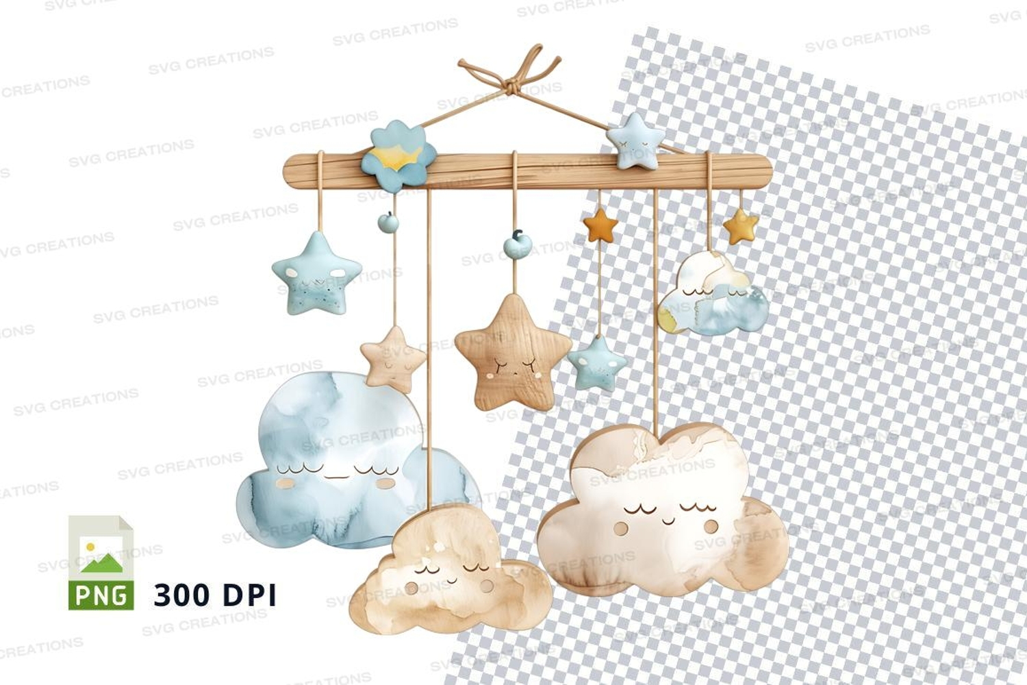 Similar Design Products to Cute cloud clipart mobile hanging stars blue sky background
