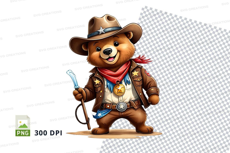 Cartoon teddy bear cowboy holding toothbrush clipart PNG example image 1