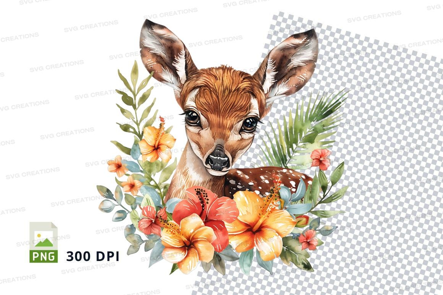 Cute fawn deer clipart with floral wreath PNG transparent example image 1