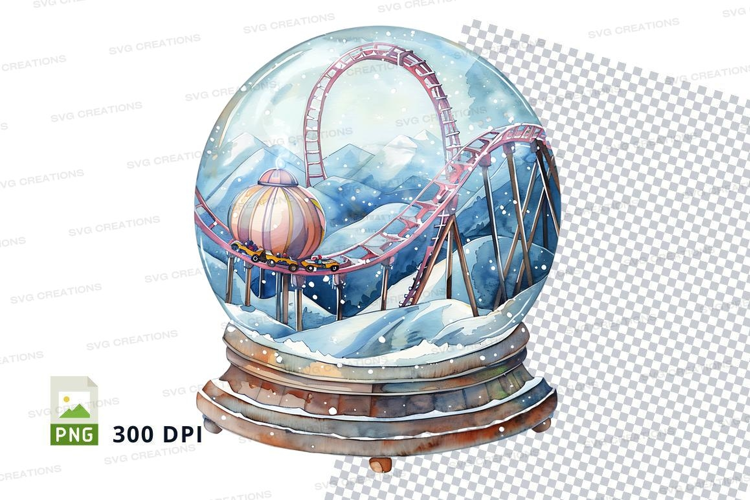 3D roller coaster clipart in snow globe winter scene example image 1