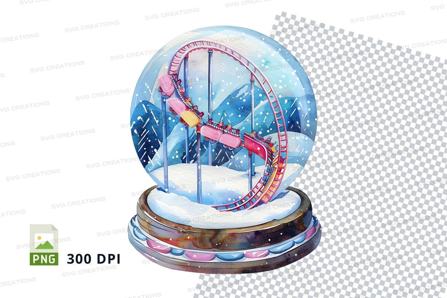 3D roller coaster clipart in snow globe winter scene example image 1