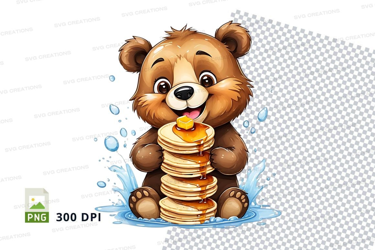 Similar Design Products to Cute teddy bear eating pancakes clipart illustration
