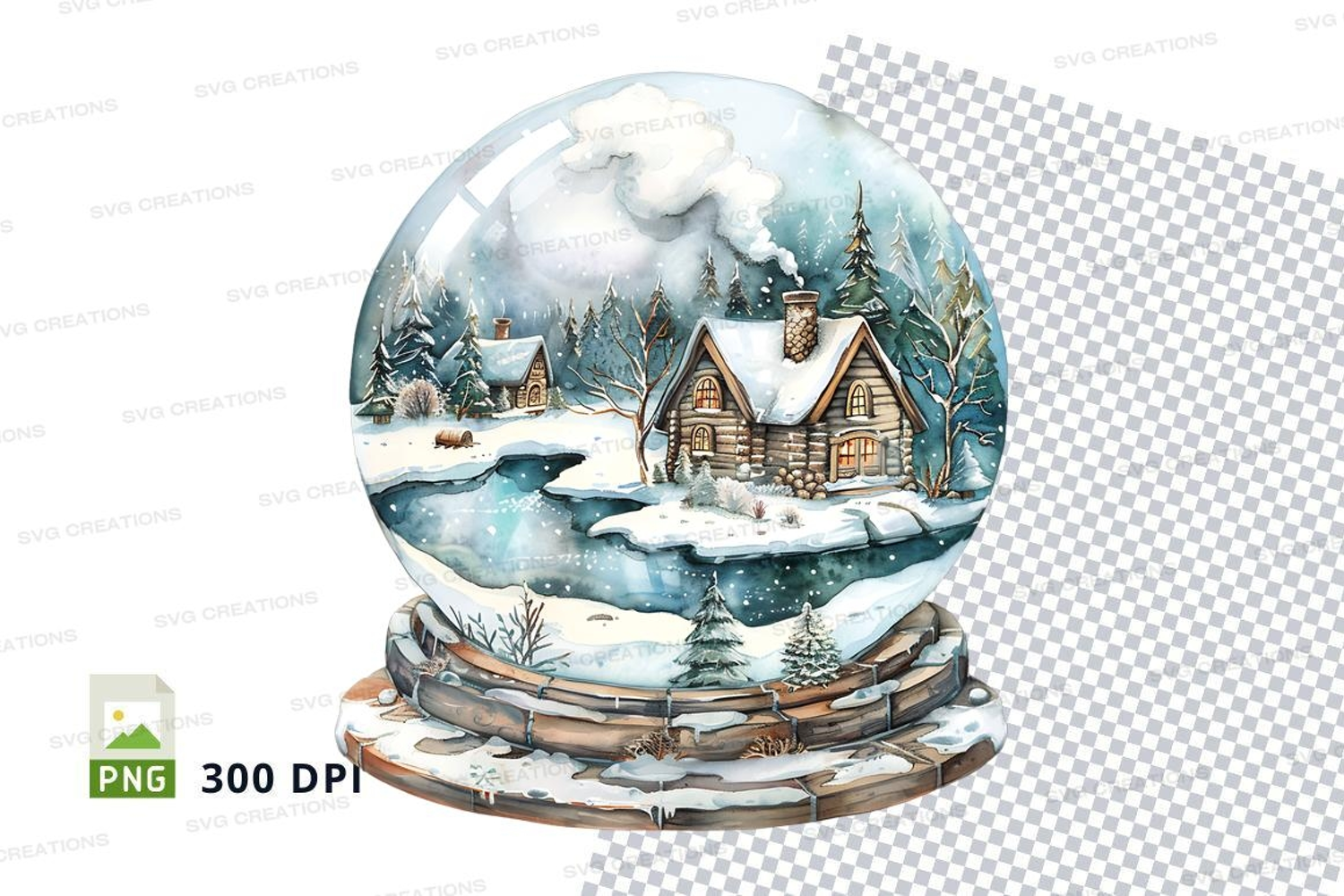 Similar Design Products to Snow globe winter cabin scene clipart transparent PNG