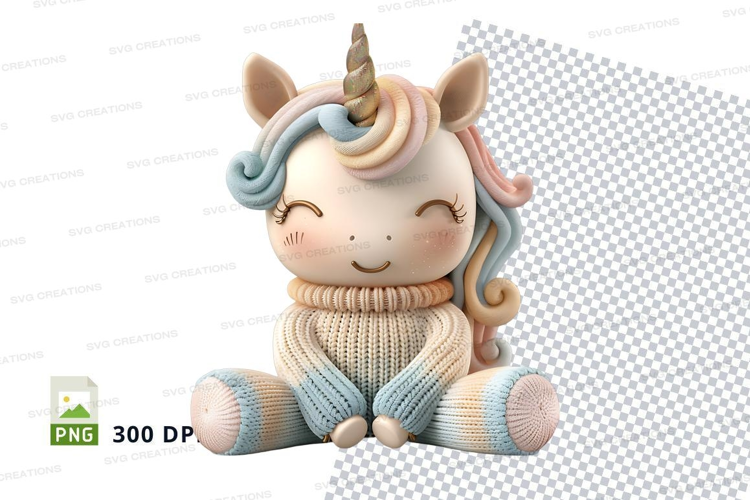 Cute unicorn plush toy sitting on white knit blanket clipart example image 1