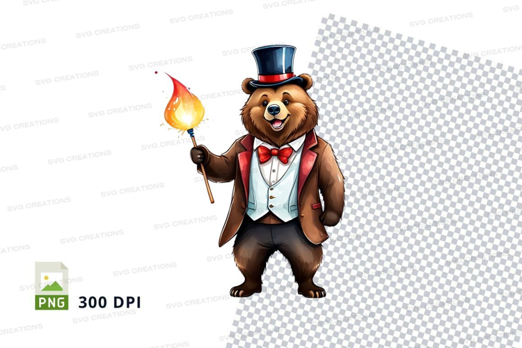 Cartoon Bear Clipart Mascot Png Hat Suit Fire Top Hat Match