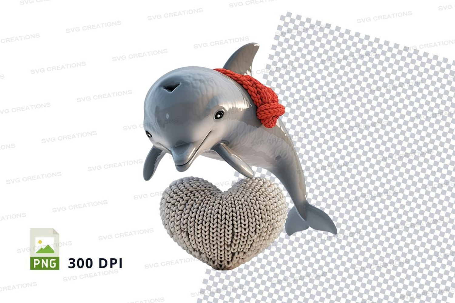 Cute dolphin holding heart clipart PNG transparent example image 1