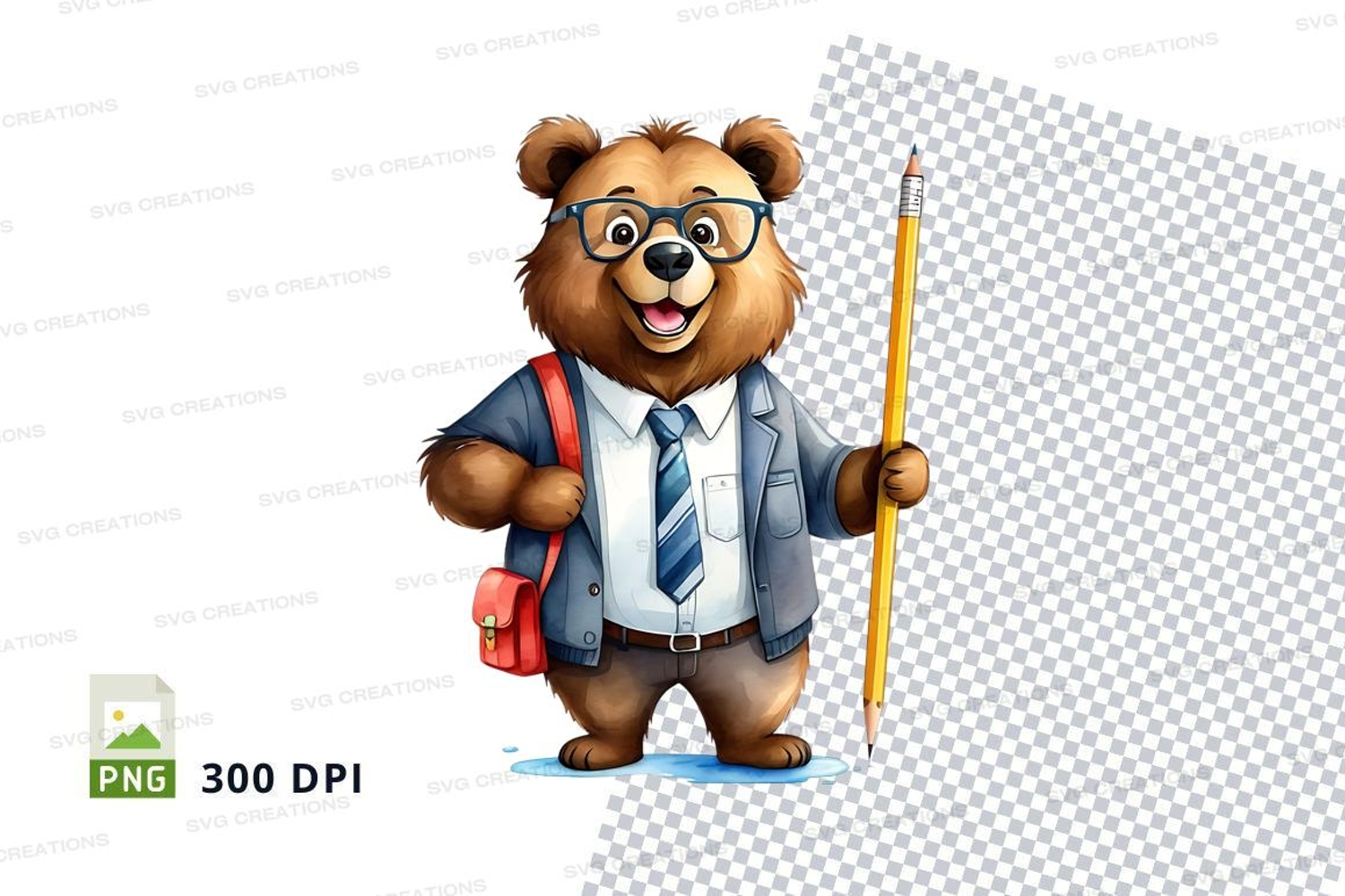 Similar Design Products to Cartoon bear student writing with pencil clipart PNG