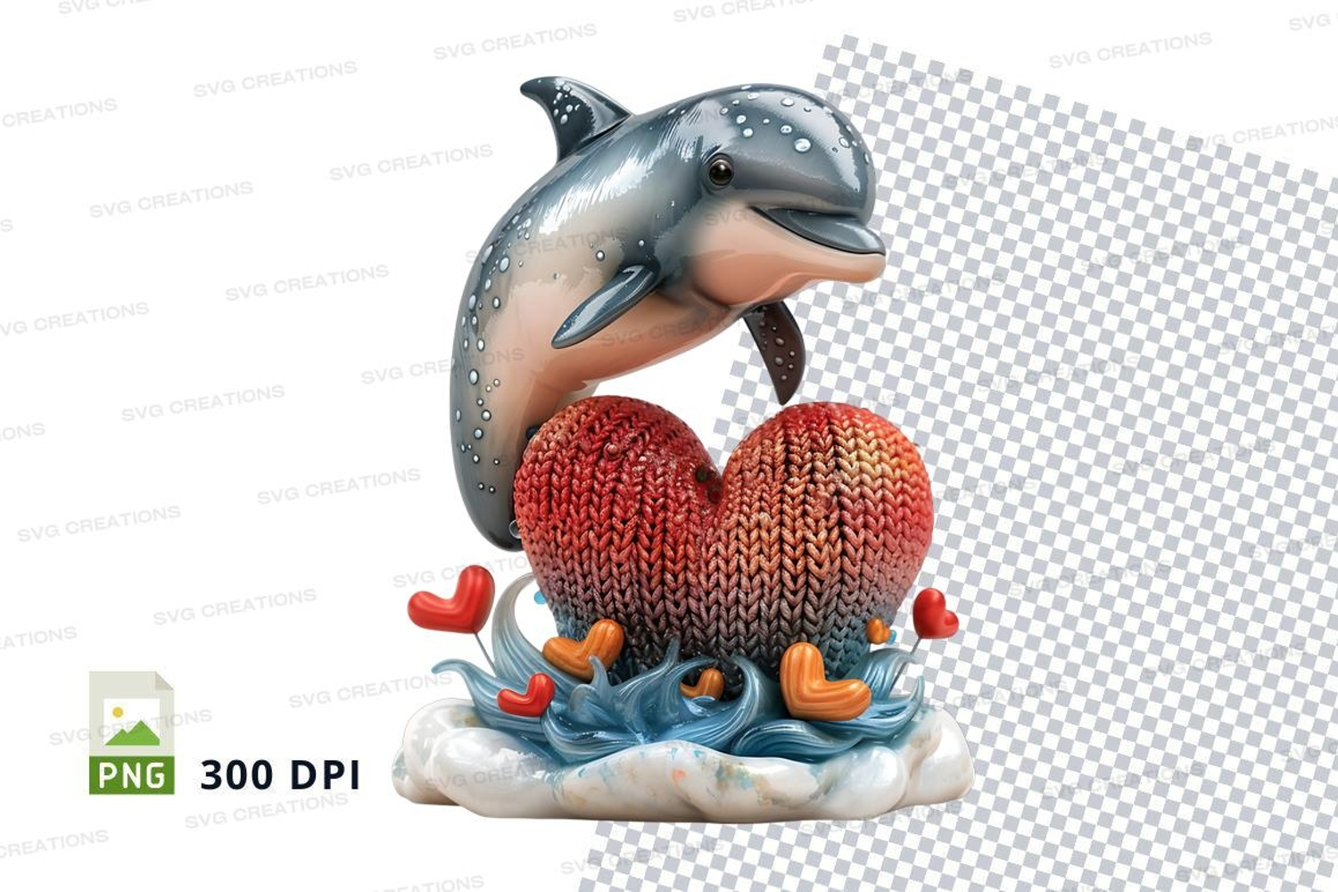 Dolphin holding heart with seashells romantic clipart example image 1